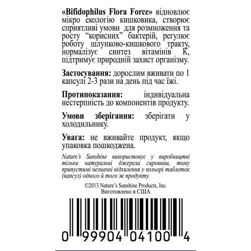 БАД к пище Бифидофилус Флора Форс НСП является источником пробиотических микроорганизмов (бифидобактерий и лактобактерий).