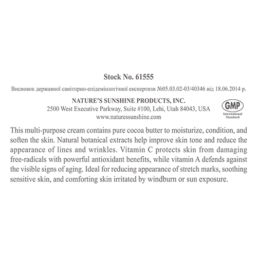 Применение: мягкими круговыми движениями нанесите небольшое количество крема на кожу.
