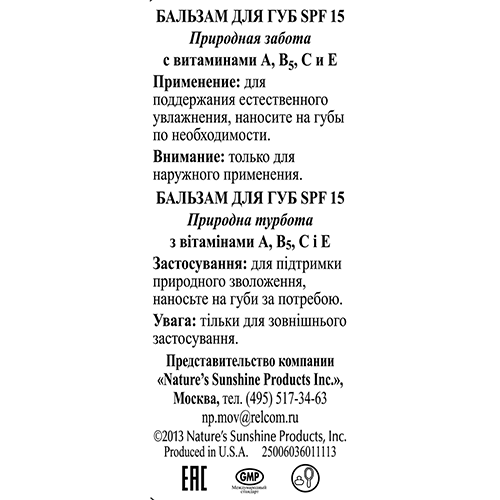 Lip Balm SPF 15 «Natural Care» (Бальзам для губ c витаминами А, В5, С и Е)