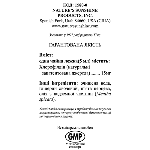 Состав на 1 чайную ложку (5 мл): хлорофиллин натрия (sodium сlorophylinn) - 14,9 мг; масло мяты колосовой (Mentha spicata) - 4,35 мг.