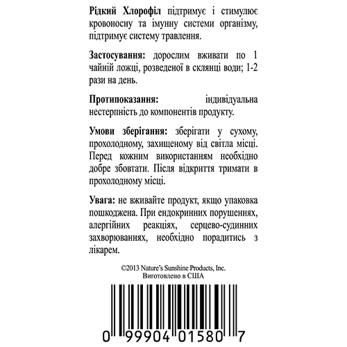БАД к пище Хлорофилл жидкий является дополнительным источником хлорофилла.
