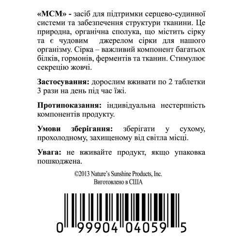 БАД к пище МСМ НСП является дополнительным источником серы в органической форме.