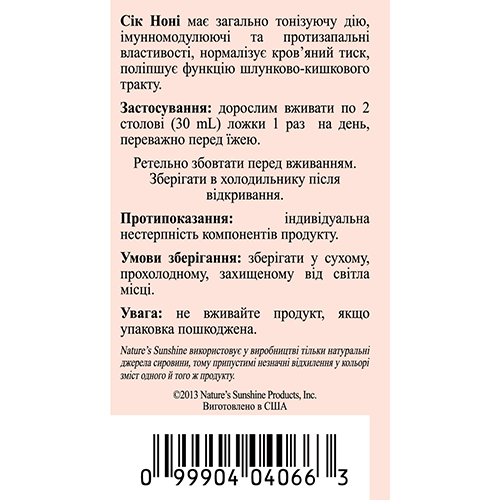 БАД к пище Сок Нони является дополнительным источником проантоцианидов, содержит органические кислоты.