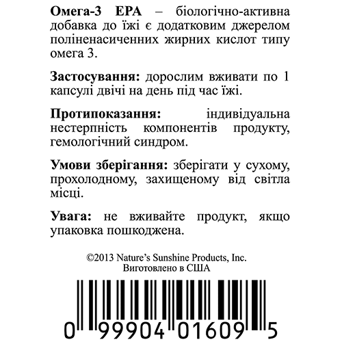 БАД к пище Омега-3 (ПНЖК) НСП является дополнительным источником полиненасыщенных жирных кислот омега-3, содержит витамин Е.
