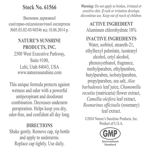 Состав: вода, феноксиэтанол, хлоргидрат алюминия, сорбитол, стеарет-21, этилгексипальмитат, изостеариловый спирт, метилпарабен, этилпарабен, бутилпарабен, пропилпарабен, изобутилпарабен, цетиловый спирт, отдушка, морская соль, сок листьев барбадосского алоэ, экстракт ромашки аптечной, экстракт листьев розмарина, экстракт листьев камелии китайской.