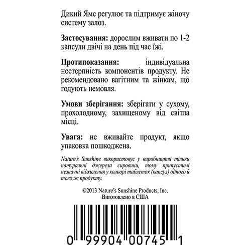 БАД к пище Дикий Ямс НСП является дополнительным источником стероидных сапонинов.